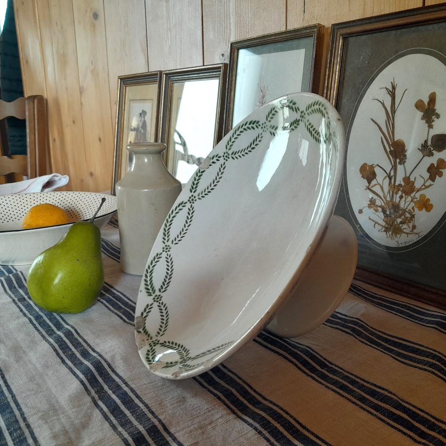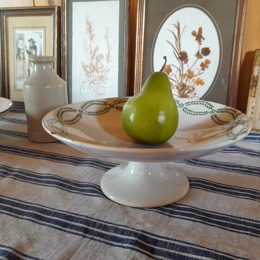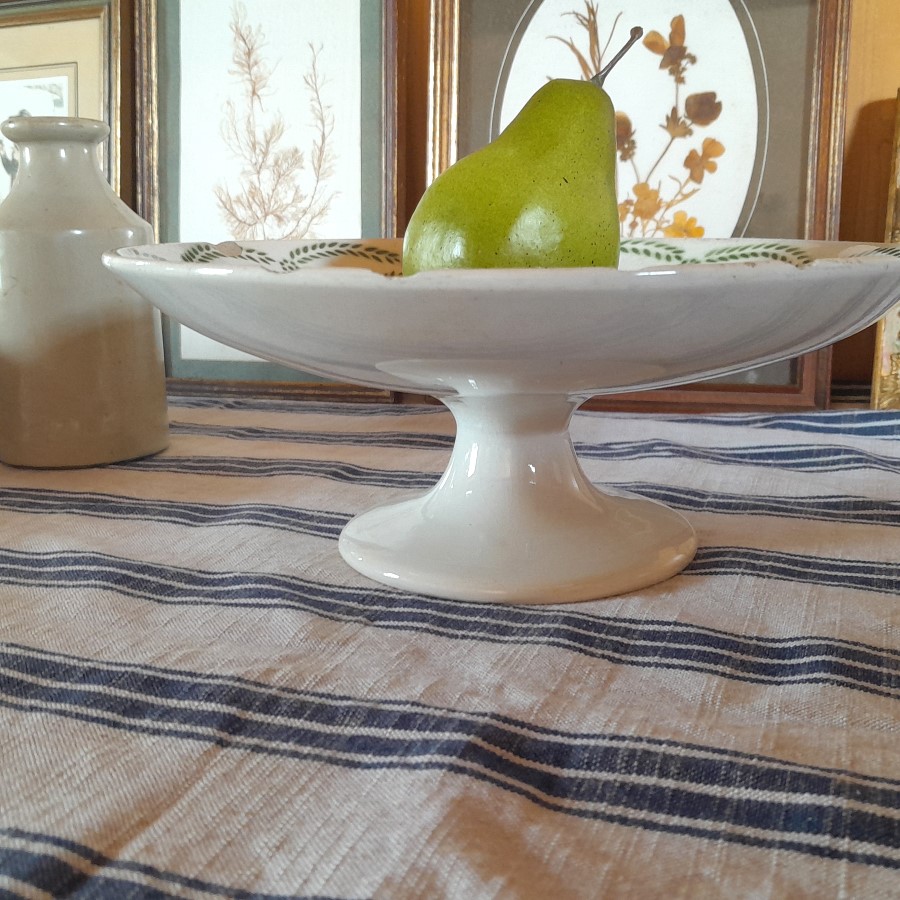 クレールフォンテーヌ窯の足つきのお皿、こちらは刻印から19世紀末から20世紀初頭ごろのお品と思われます。