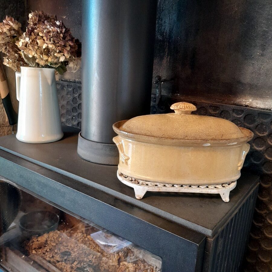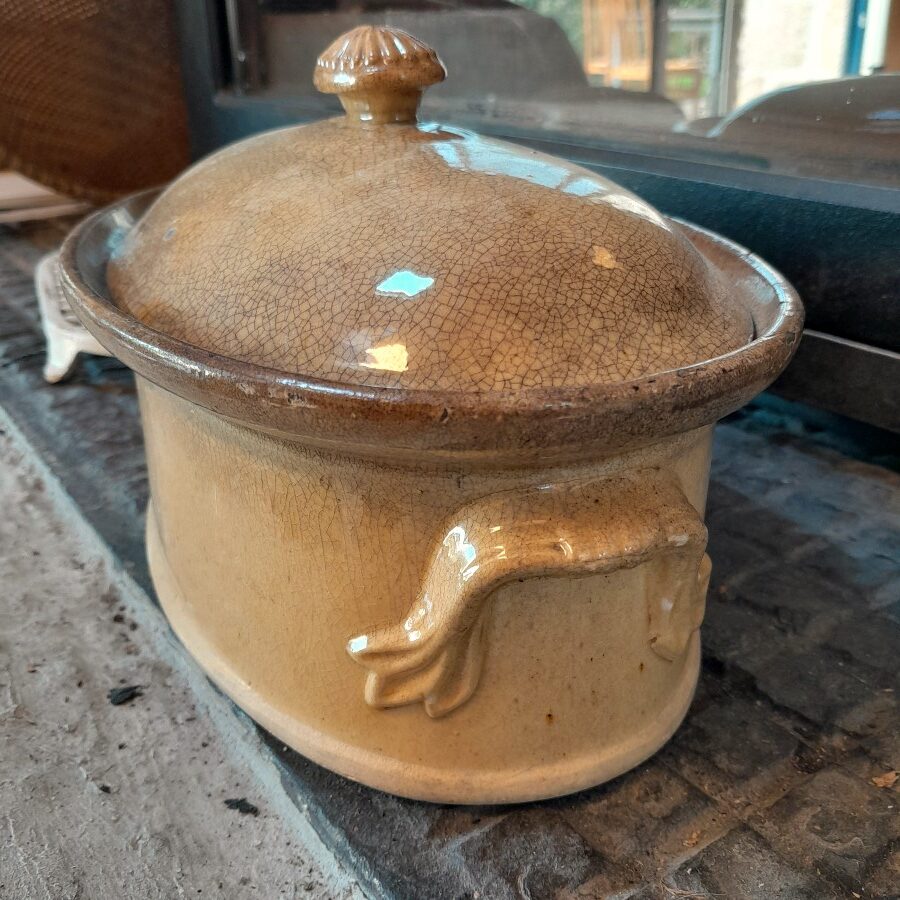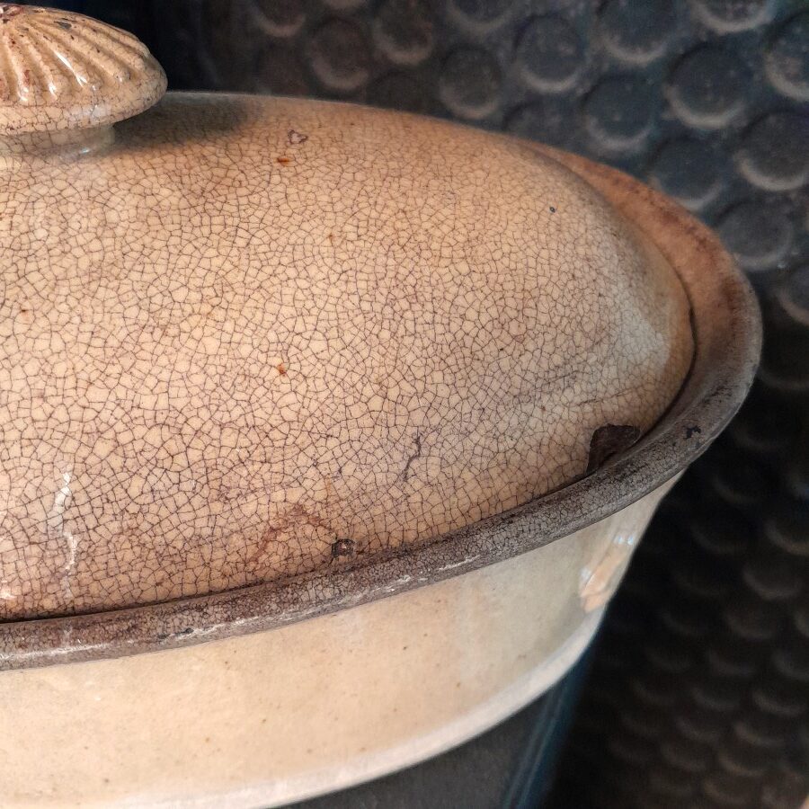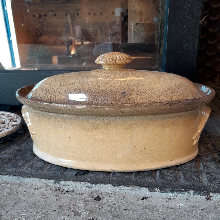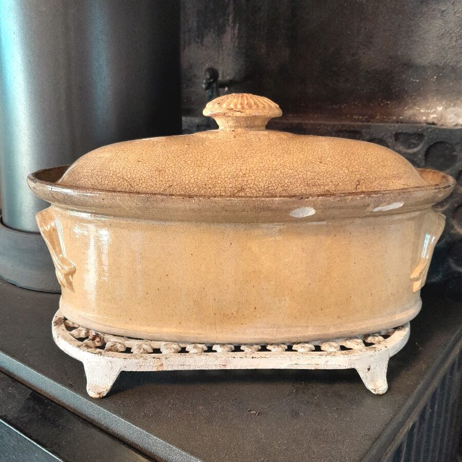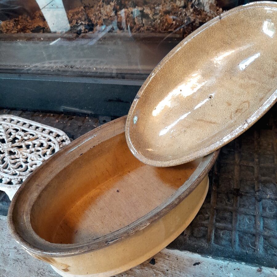 田舎パテやテリーヌを作るための陶器の入れもので、かなり大きめで存在感のあるお品。