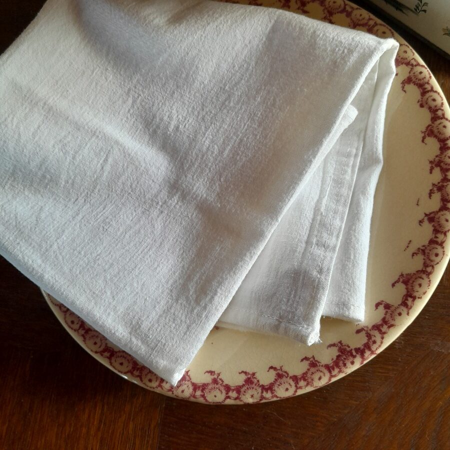 華やかというよりは控えめな印象の上品なお皿です。ガトーショコラの濃茶やカシスムースの濃い紫色を乗せてみたくなります。お皿一枚につきリネンのトーション一枚をランダムでお付けします。