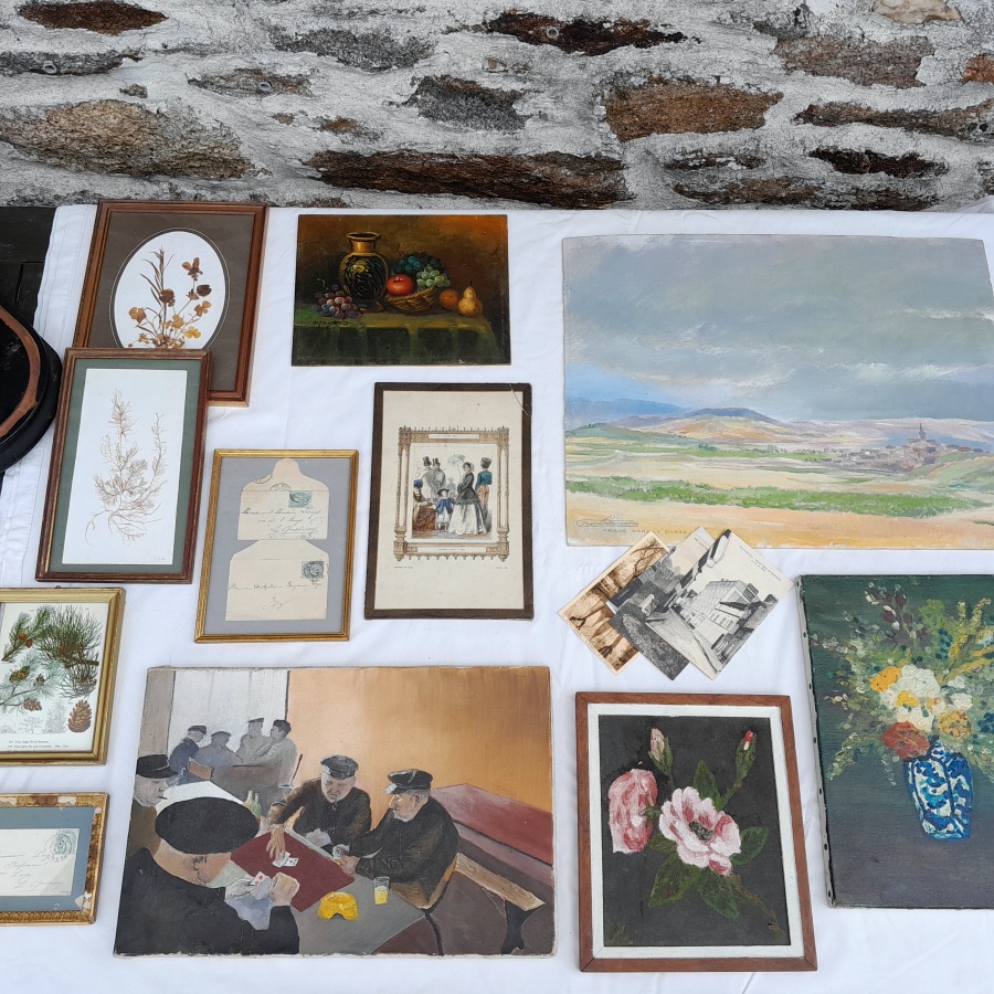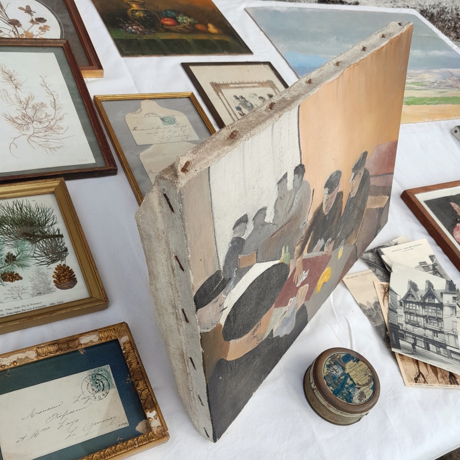 食前酒やカフェの広告雑貨とともに飾るもよし、ほかの油絵と並べて雑然とした雰囲気を楽しむもよし。