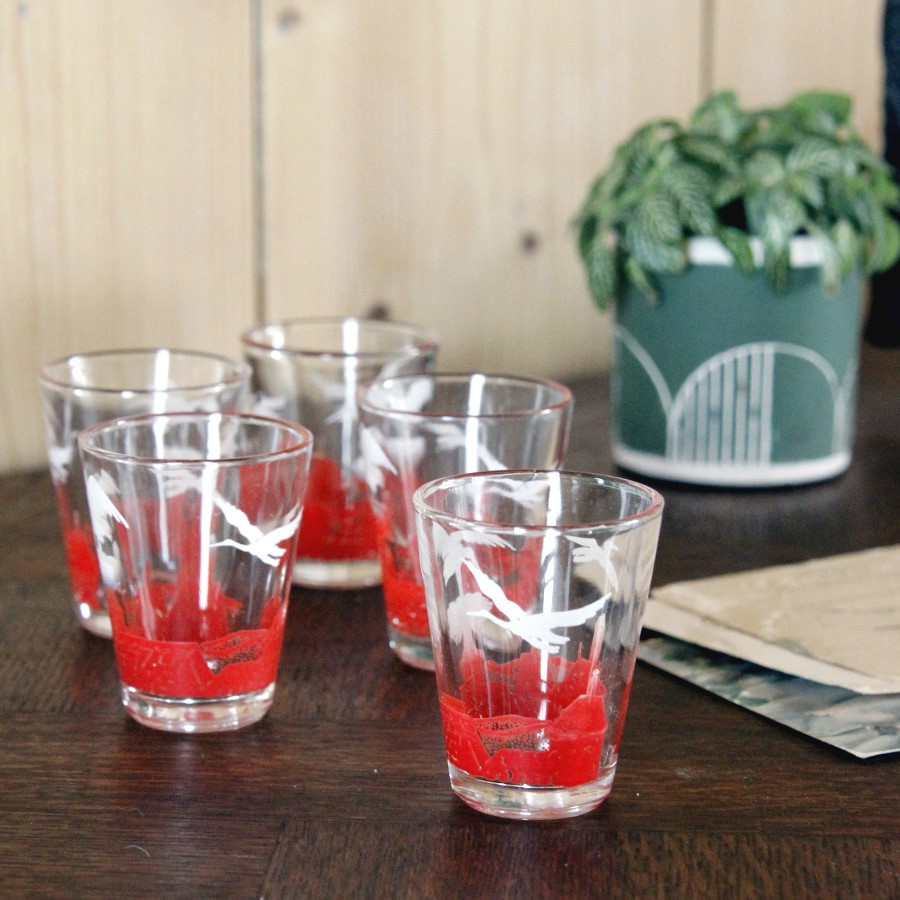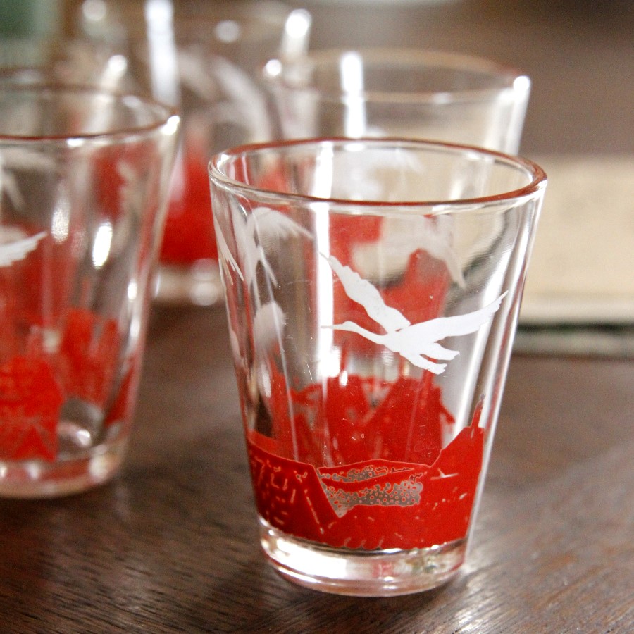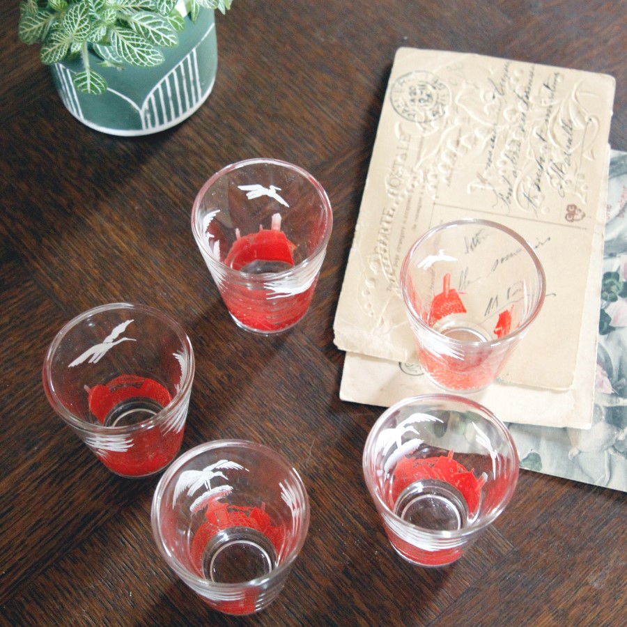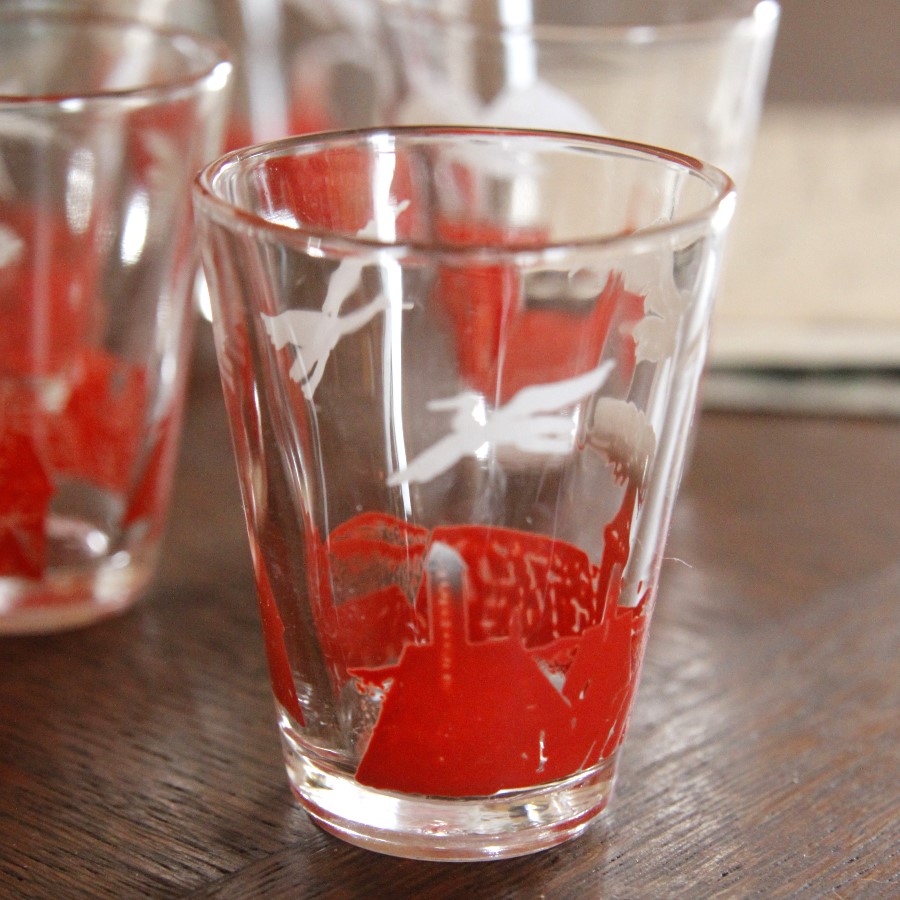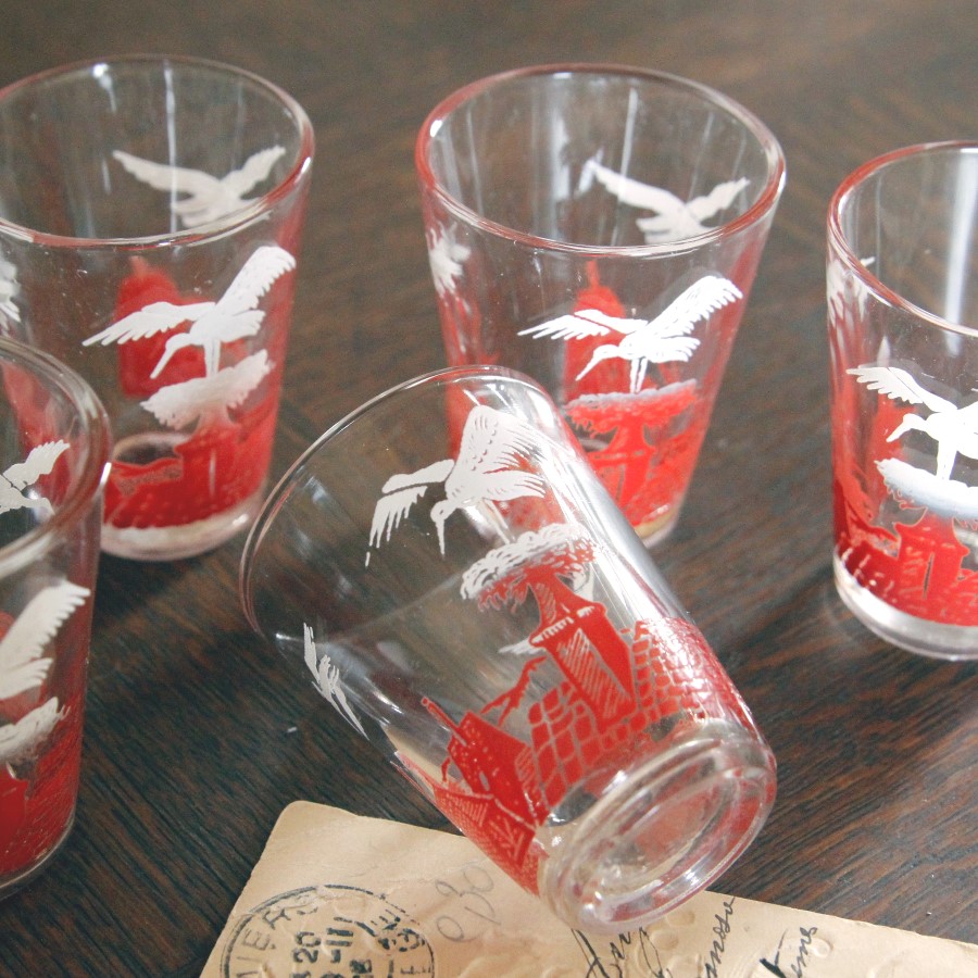 過去にもご紹介したことがある、アルザス地方の名物こうのとりがデザインされた、アペリティフ用の小さいグラスです。