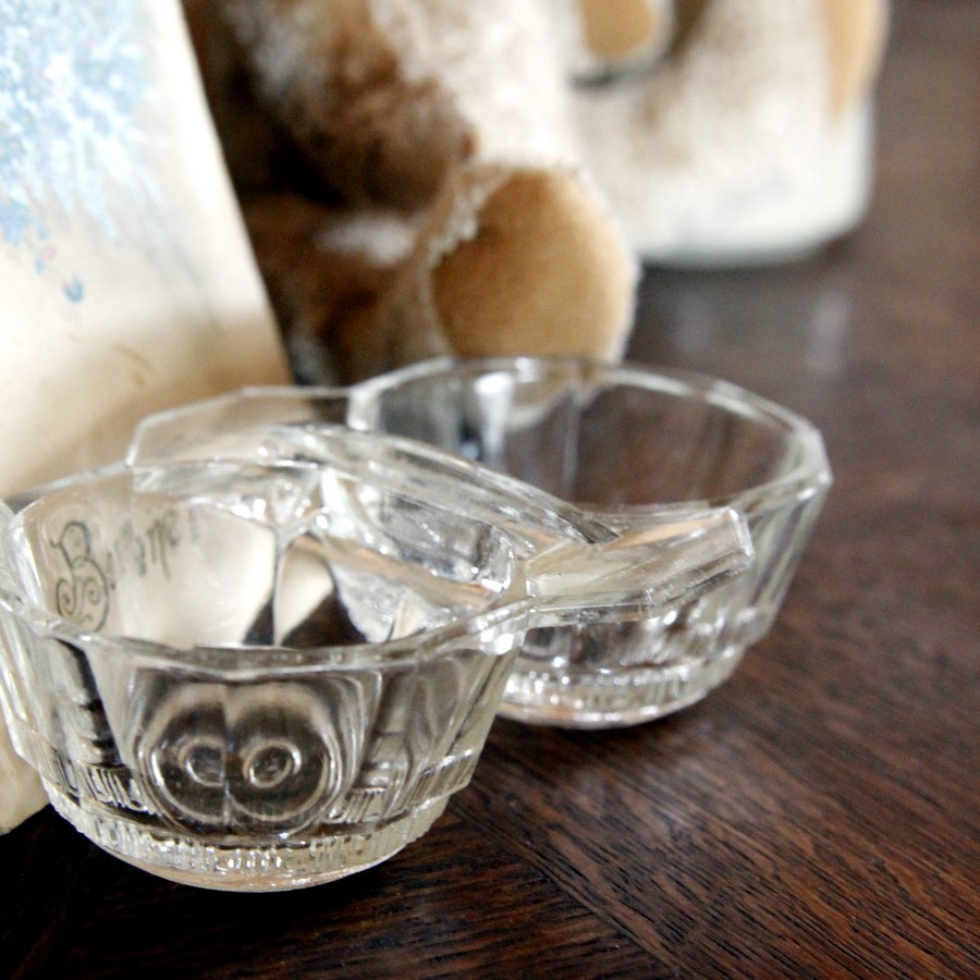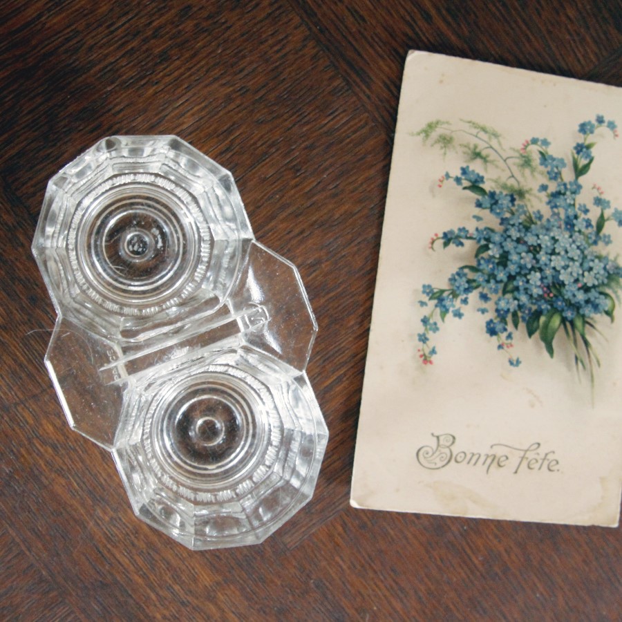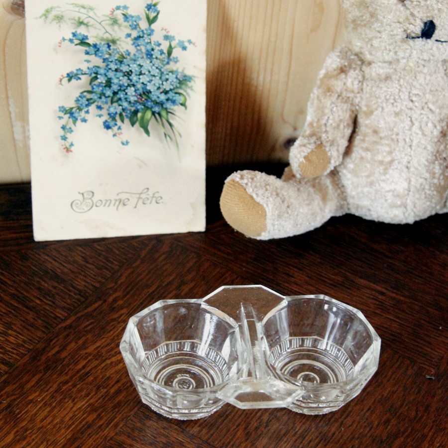 型抜きガラスで量産されたものですがそのミニマルさが美しい、塩胡椒入れです。