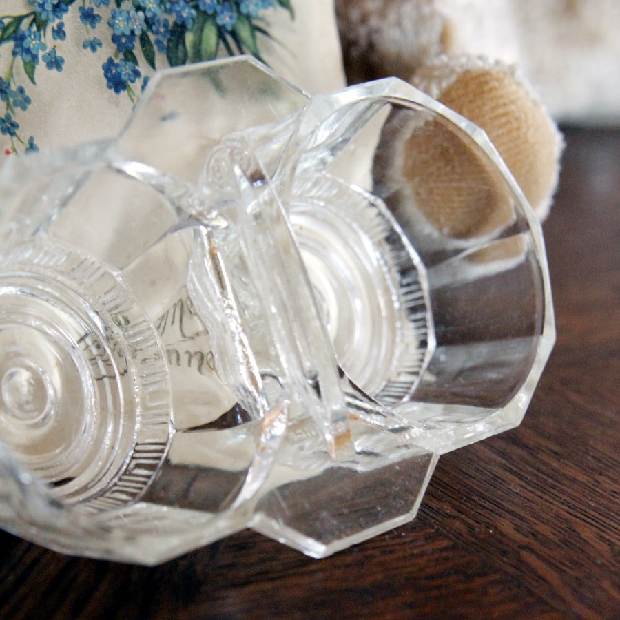 裏側にBVB、フランス製の刻印があります。縁はやや尖っており鋭利なところがあります。ガラスには厚みがあり、滑らかでツヤがあります。