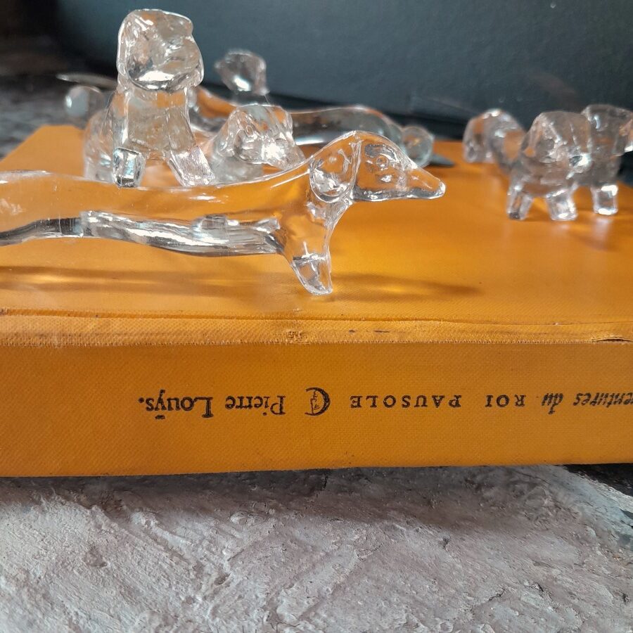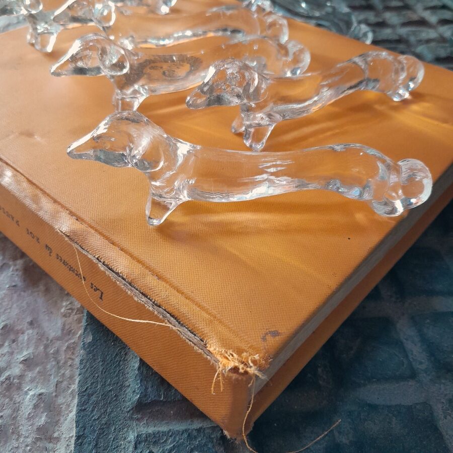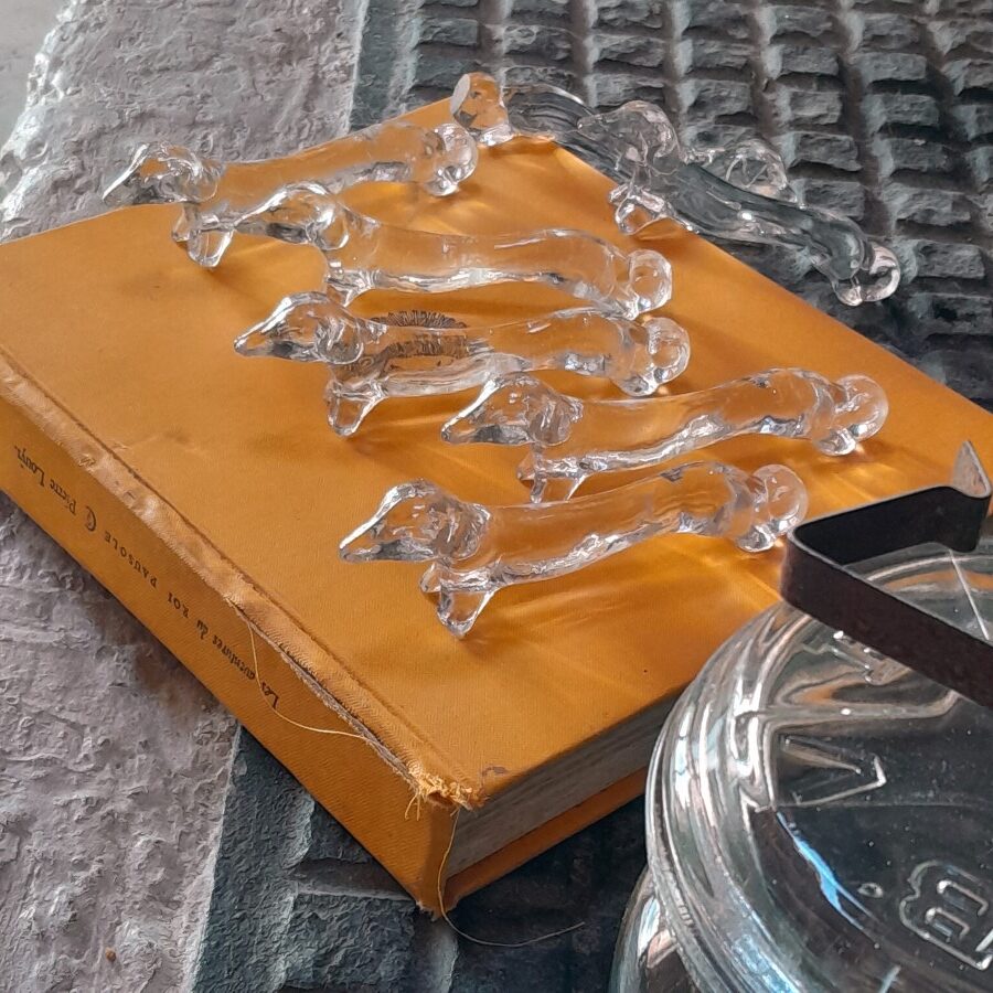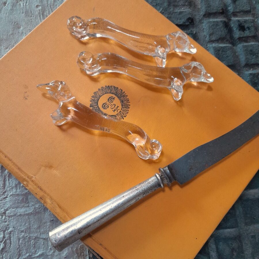 食卓でナイフを食事中に置いておくための道具で、ガラスのダックスフントのデザインです。