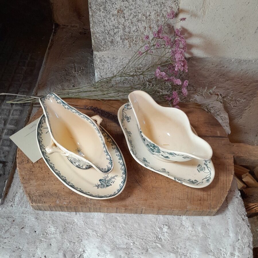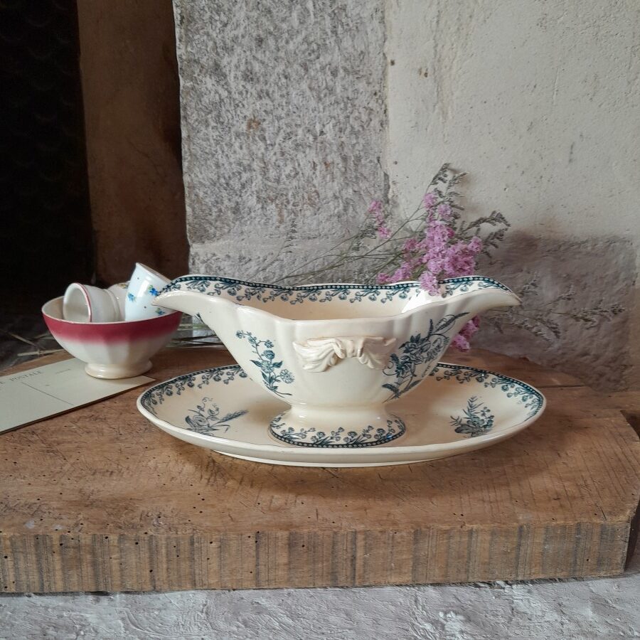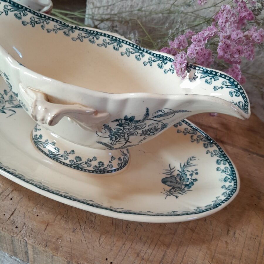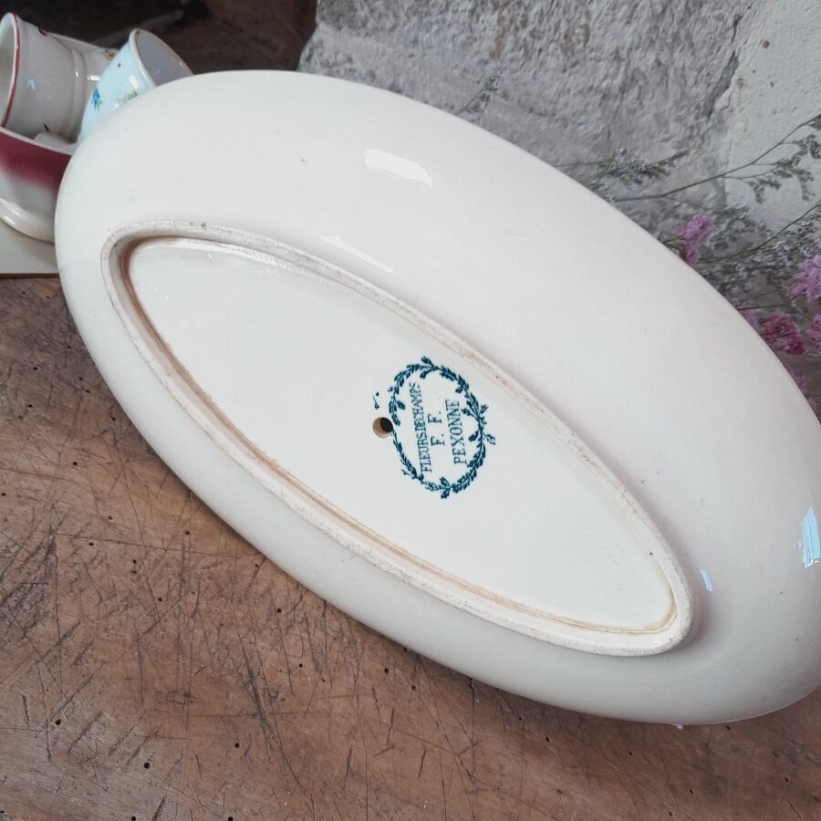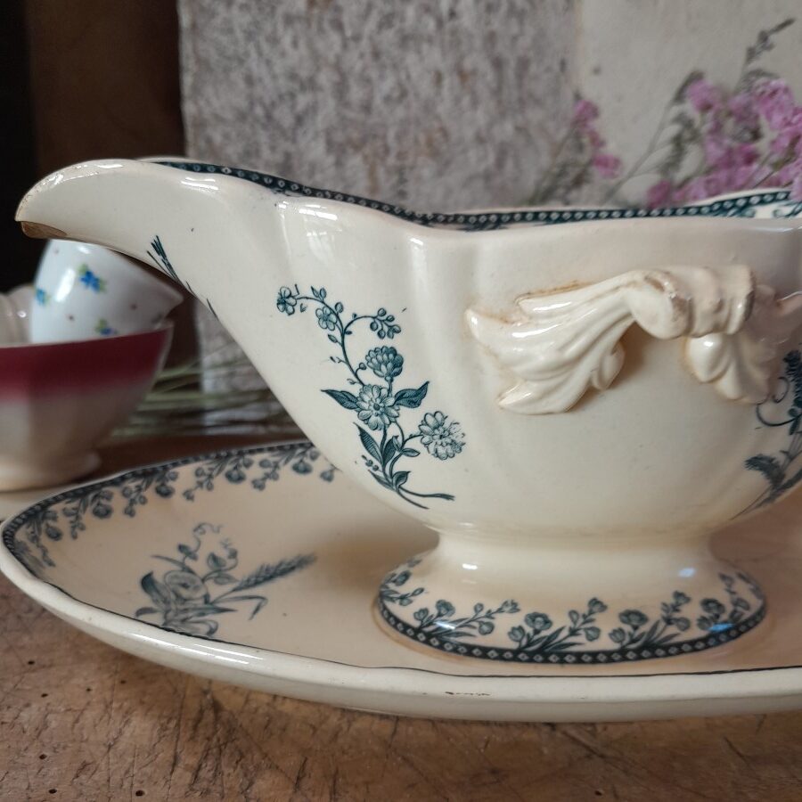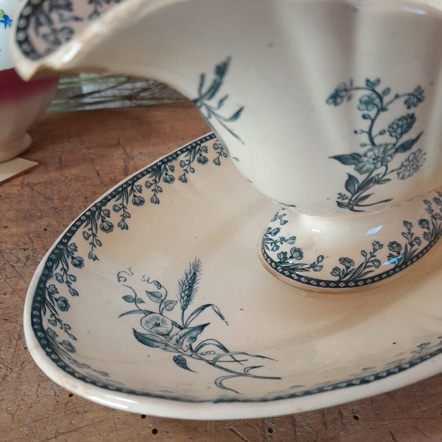 内側にも模様が入り、やや細長く深めの美しいソース皿です。