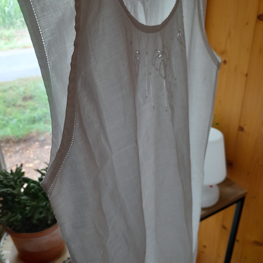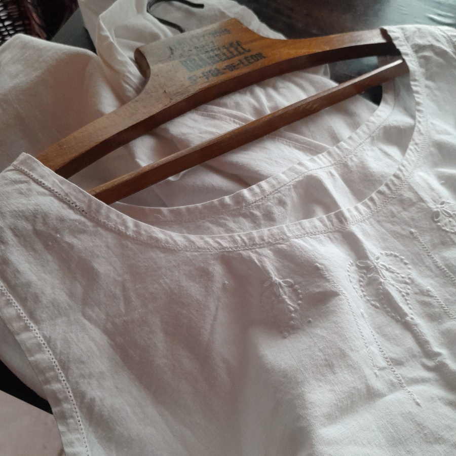 胸元に刺繍の入った、シンプルな理念のワンピースです。