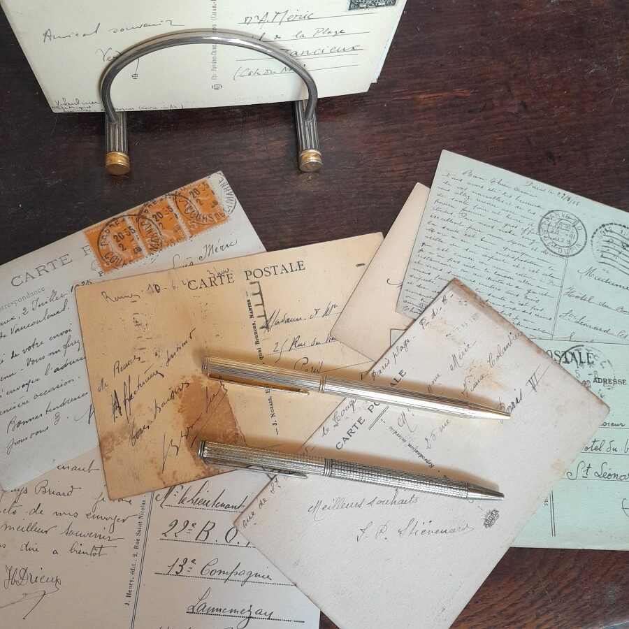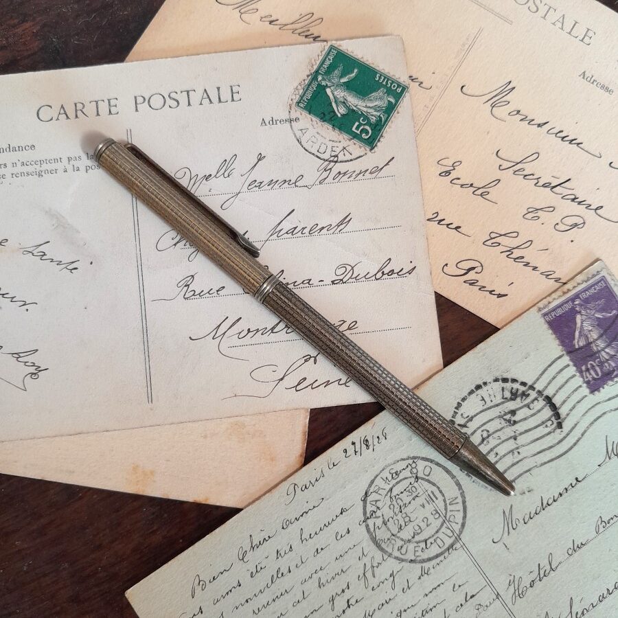 ボールペンは捻じって出すタイプで、インクは無くなっています。カードには20年代頃の消印があります。