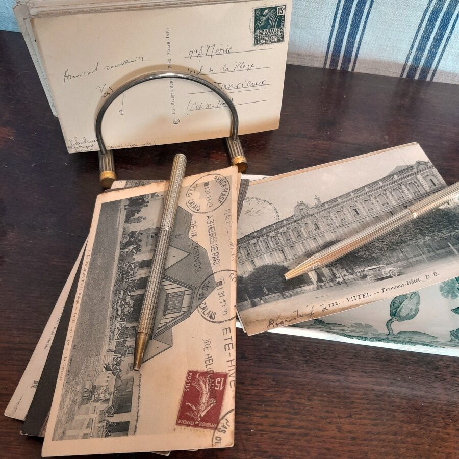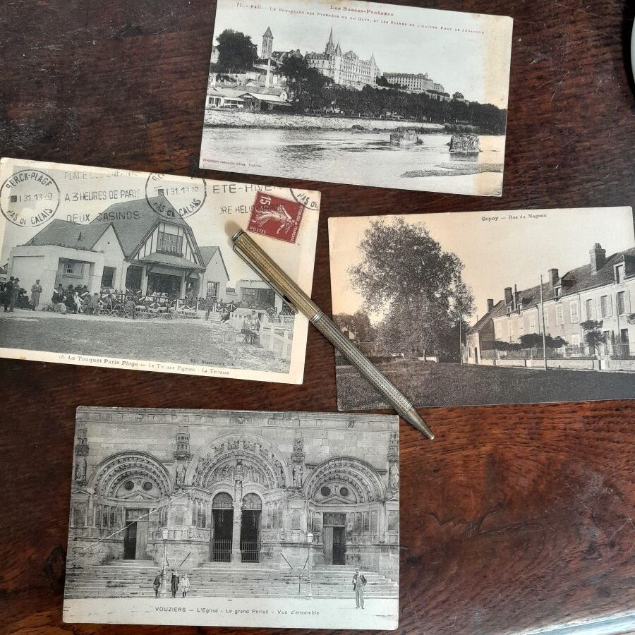 旅をしたポストカード4枚と古いボールペンをセットにしました。