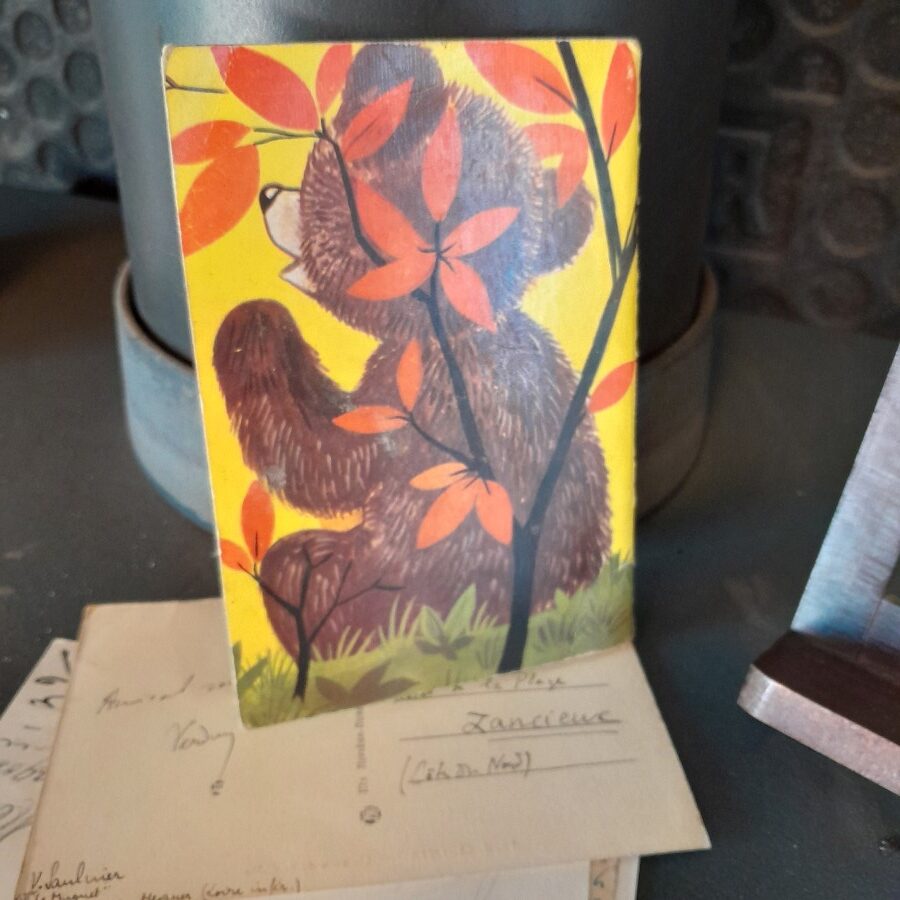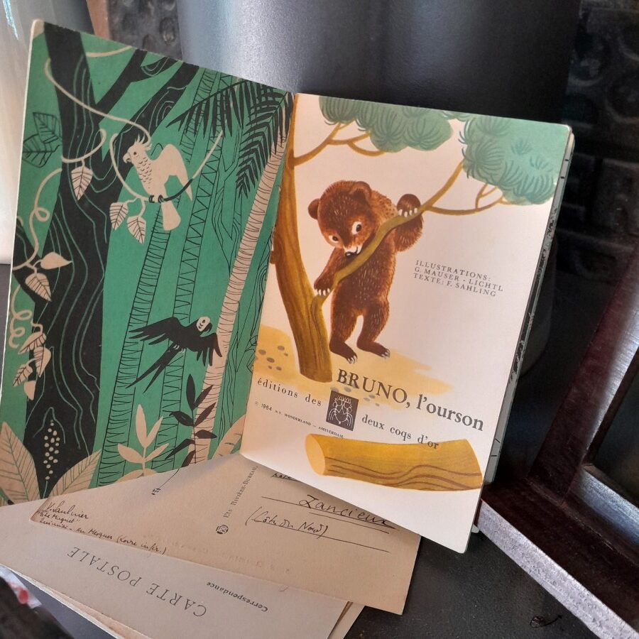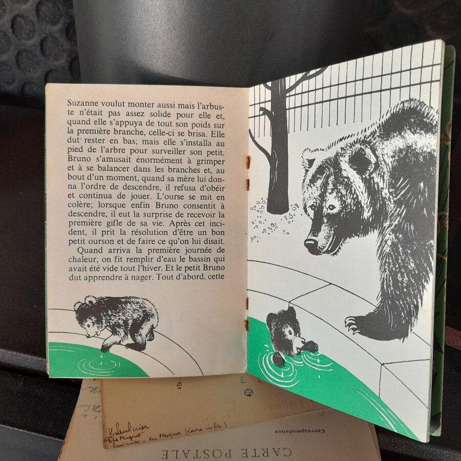 ミニ絵本は動物園に住む子熊のブルノ―のお話、チェコ原作の絵本は野に住む動物たちを歌った詩を美しいイラストと共に載せています。紙の折れ、変色や茶ばみなどが多少見られます。