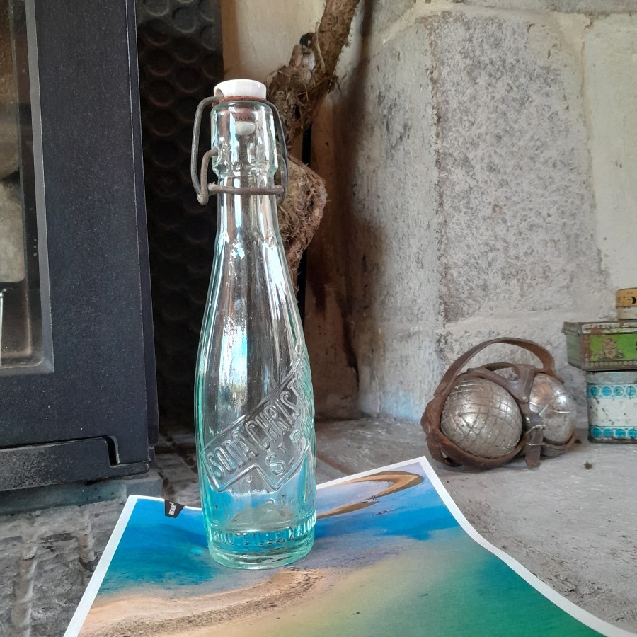ブルターニュ地方北部の町サン・ポル・ド・レオンに在したソーダ会社のものらしいガラスのボトルです。