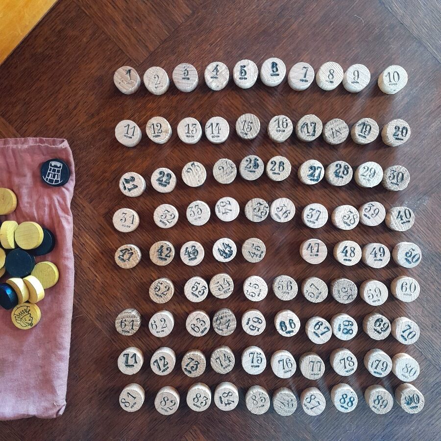 厚紙のシートがは15枚あり、数字の駒は一つ(61)欠けています(写真では46も欠けていますがセットに含まれています)。シートはマットでややざらざらした手触り。箱と共に作りはざっくりシンプルです。数字のプリントが滲んでいたり、紙のシートに染みやヨゴレ等が見られます。