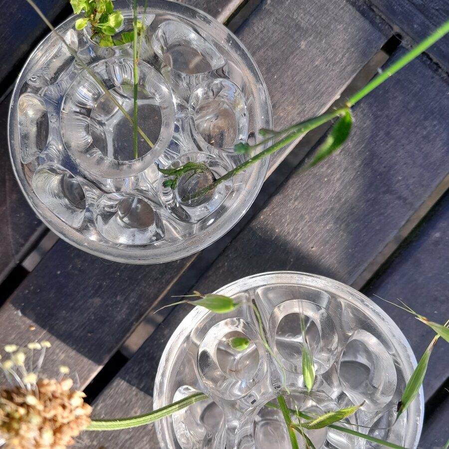 テーブルなどで小さな草花を挿して楽しむ、ガラスの花器を単品にてのご紹介です。