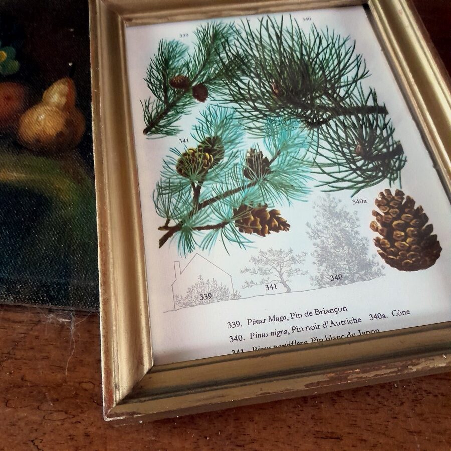 ポストカードより二まわりほど大きいサイズの額に、フェルナン・ナタン社発行のハンドサイズ植物辞典の中身を添えてお届けします。