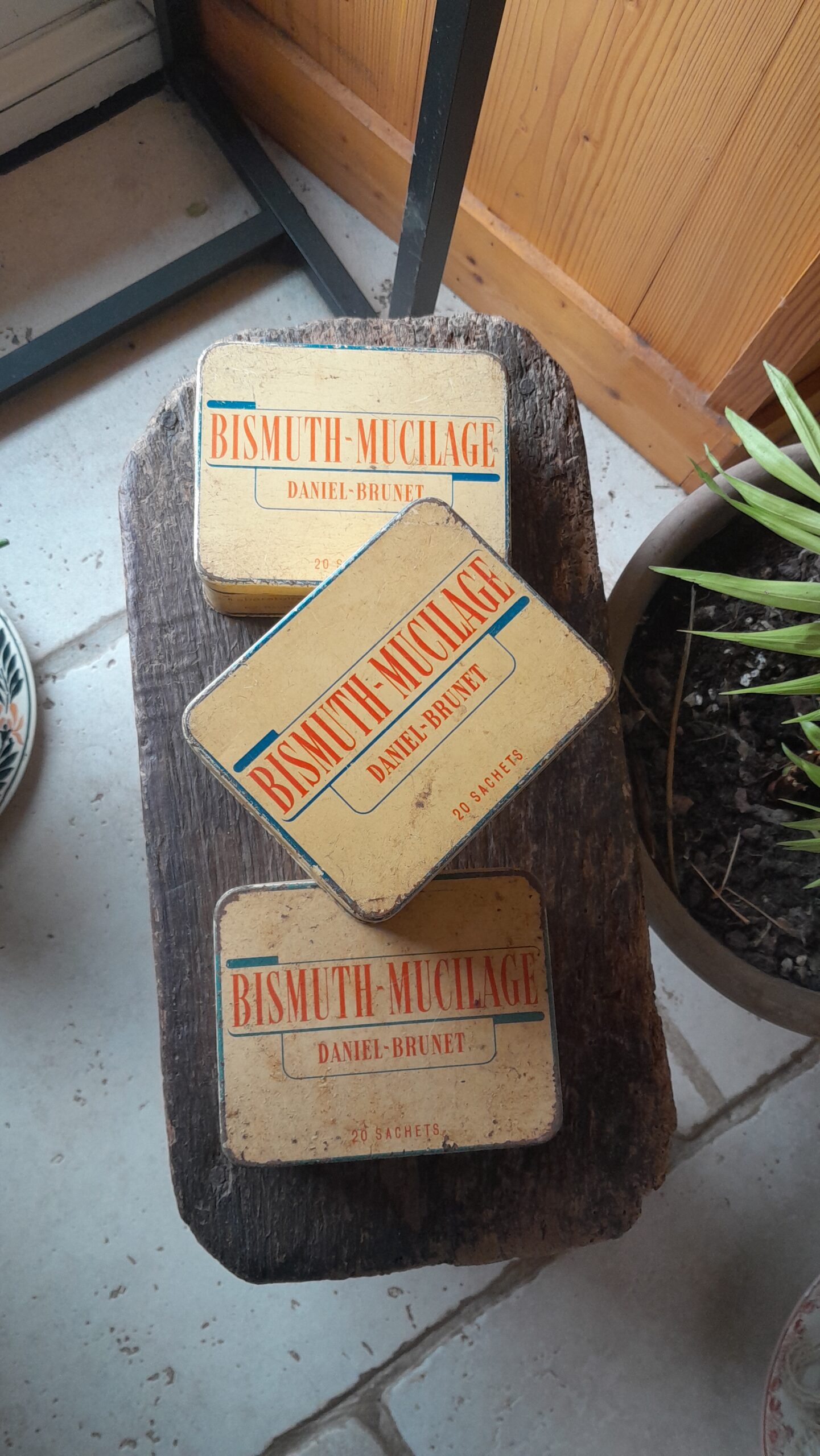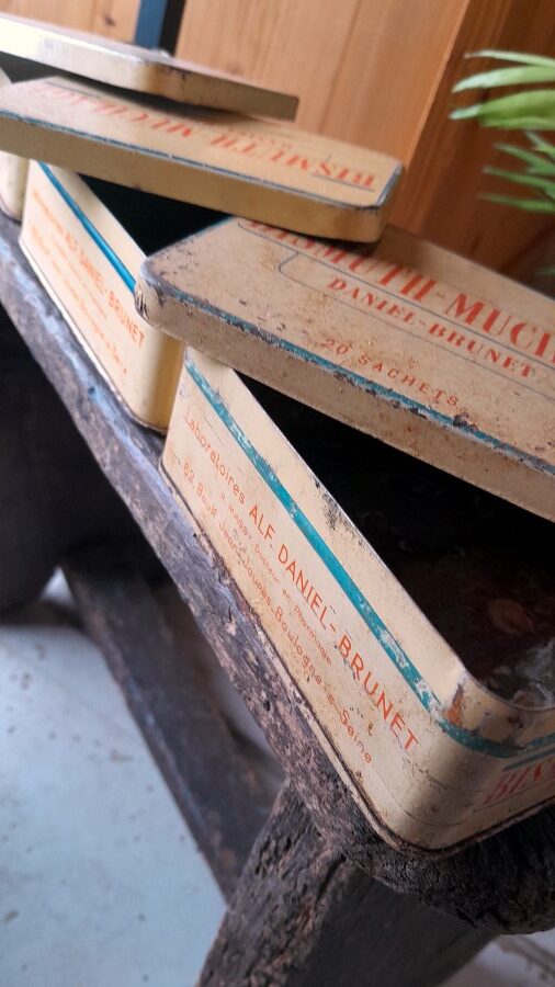 整腸剤と思われる薬の入れものだった缶で、同じものが3つ揃っているのでセットでお届けします。