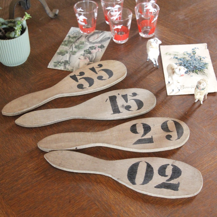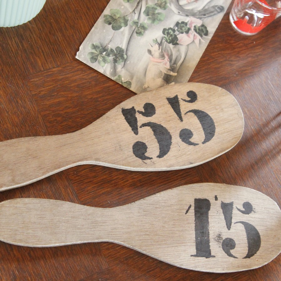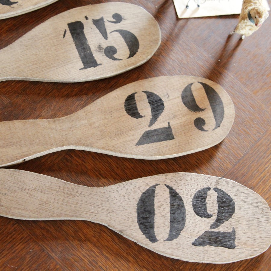 何かのゲームで使っていたと思われる、数字が書かれた木のプレートを単品でお届けします。