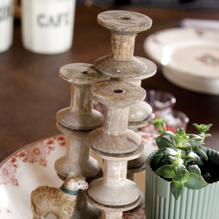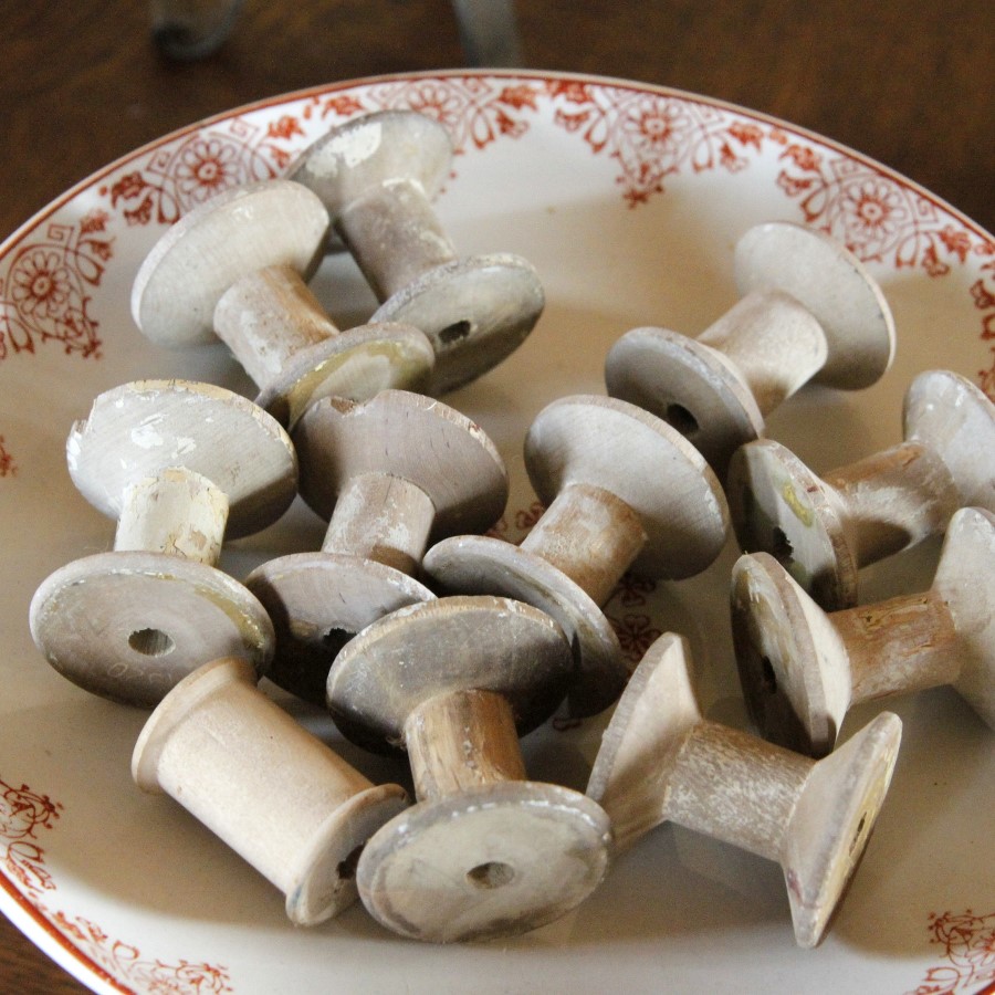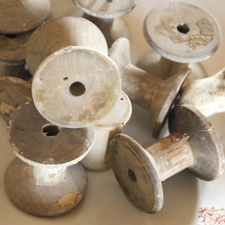 古い木の糸巻き10個、おまけに小さめの一つをつけてまとめてお届けします。
