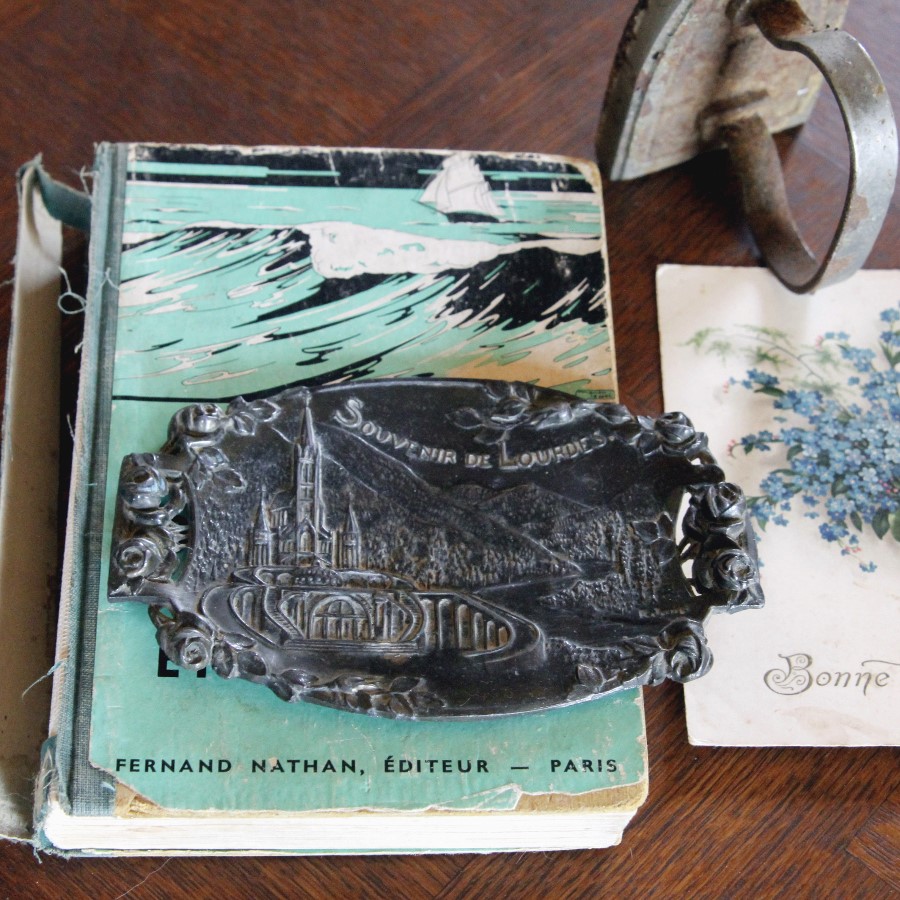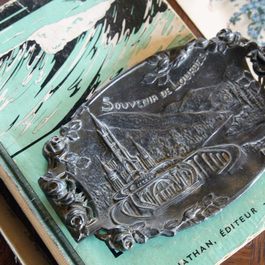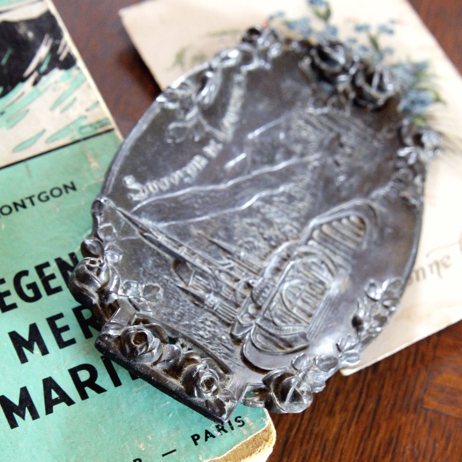 巡礼で訪れる人の多い聖地ルルドのおみやげもの、メタルの小さめプレートです。