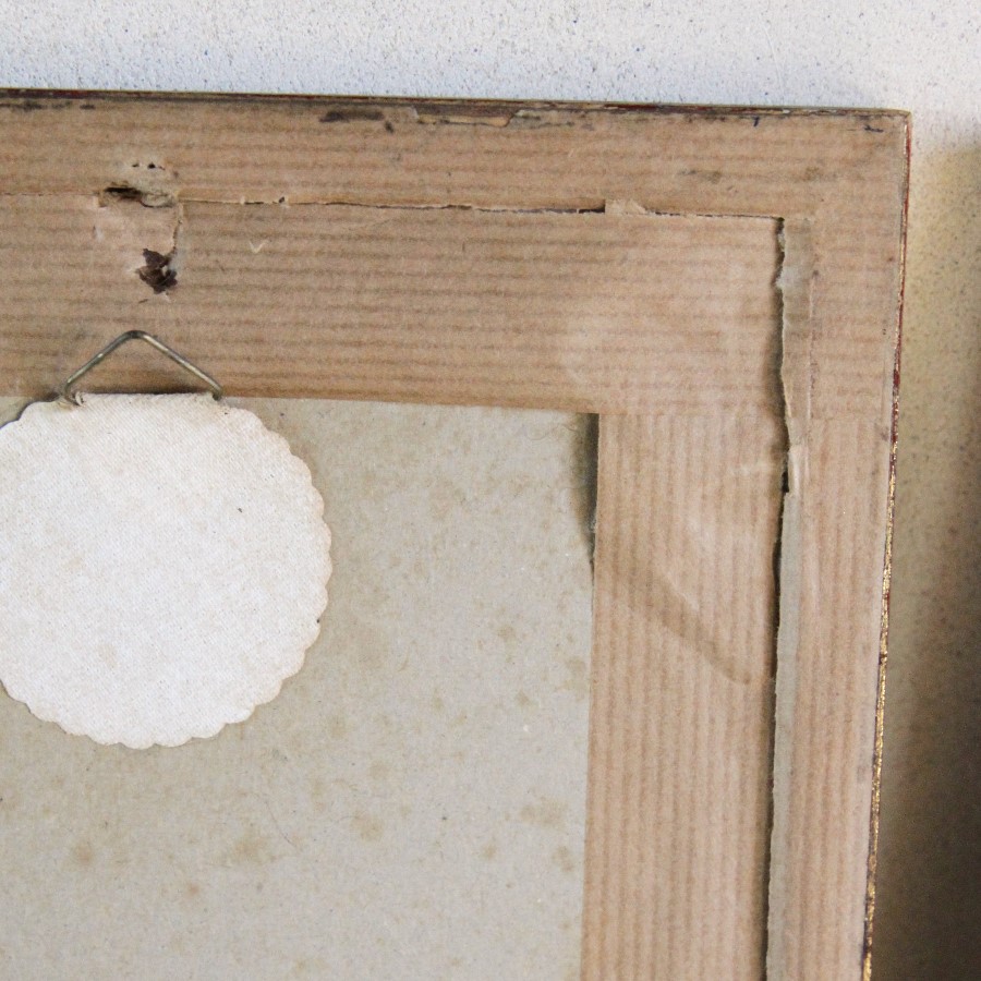 ガラス内側をお手入れするため裏側から開いたため、紙の破れがあります。壁に掛ける際には念のため布テープなどで補強してもよいかと思います。全体に状態は良好です。